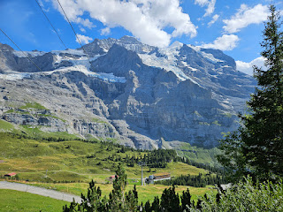 At Jungfrau, the views were incredible. Helicopters were dropping off people in the distance. Tony & I threw our first snowball in August.